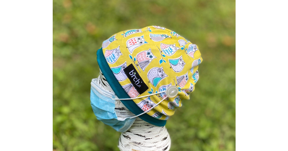 Organic Cotton Owl Print Scrub Cap with Buttons, Ponytail, Bun Stretch Comfort Fit, Unisex Full Nurs