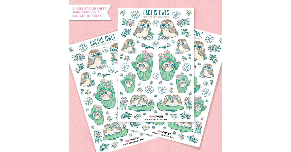 Cactus Owls Kiss Cut Paper Sticker Sheet