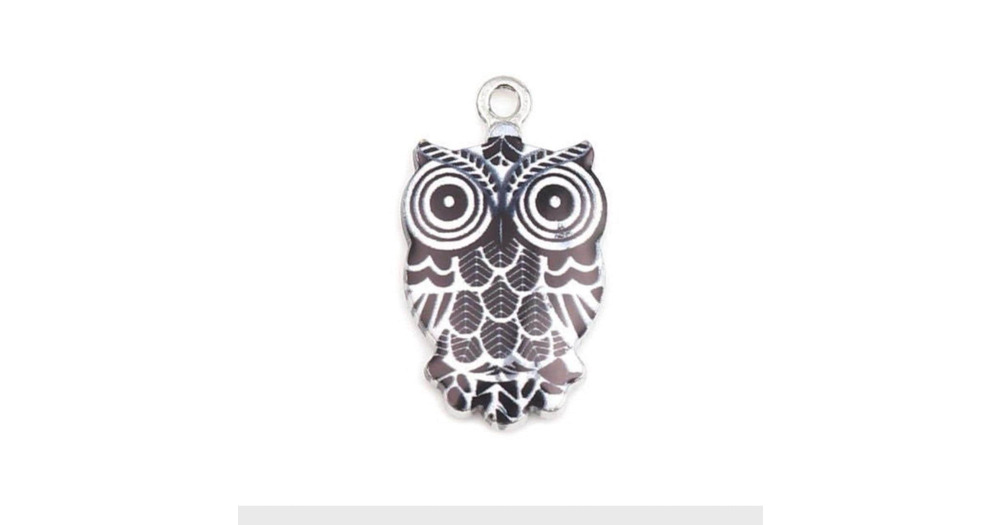 Enamel Owl Charm: Patterned Alloy Pendant, Jewelry Making (23mm x 13mm)