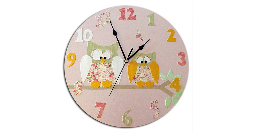 Personalised Owl Clock, Nursery Decor - Blue, Pink, Yellow, Purple, Gift for Girls, Wall Clock, Girl