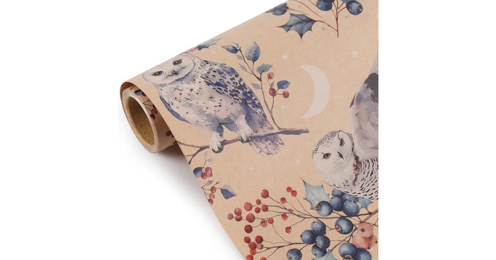Aimyoo Christmas Wrapping Paper - 17 Inch x 16.4 Feet Mini Roll - Cute Owls Night Woodland Design fo