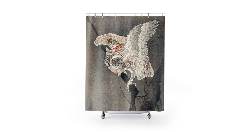 Shower Curtain with Japanese Wood Cut Owl Art