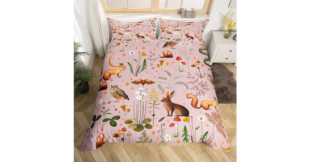 Erosebridal Rabbit Bedding Set Twin Size, Mushroom Dandelion Comforter Cover Cute Owl Animal Duvet C