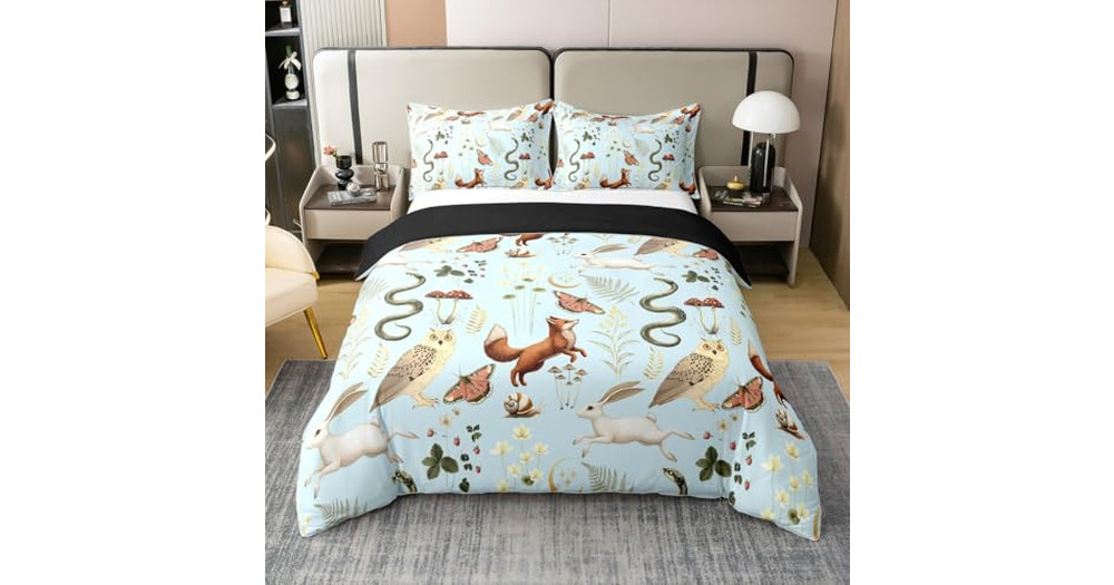 Feelyou Animal Duvet Cover 100% Cotton Queen Size Boys Girls Foxes Squirrels Owls Snails Bedding Set