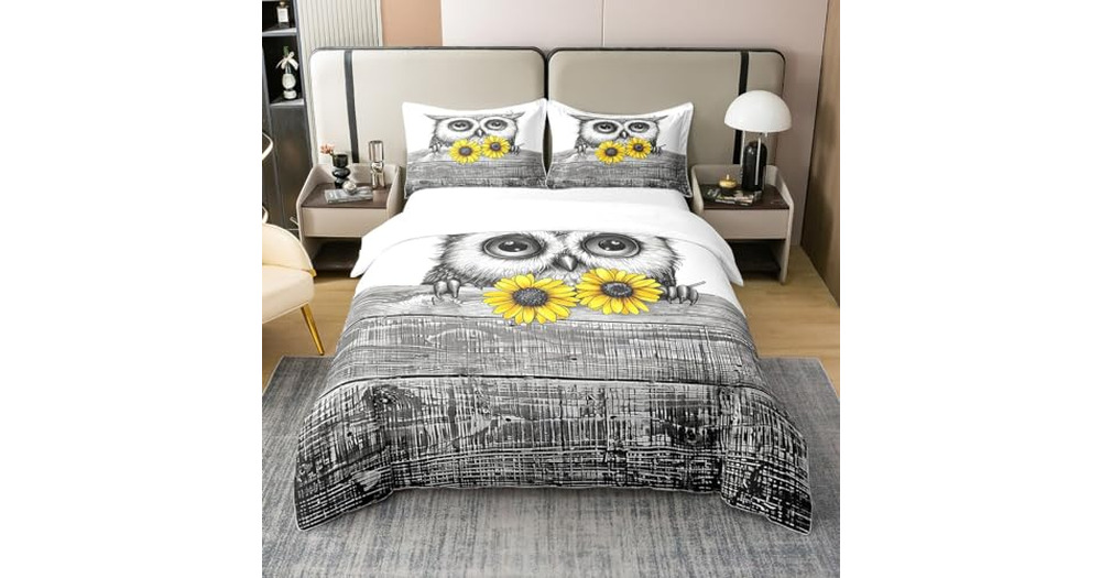 Erosebridal Cute Owl 100% Natural Cotton Comforter Cover Full Size Sunflower Floral Duvet Cover Vint