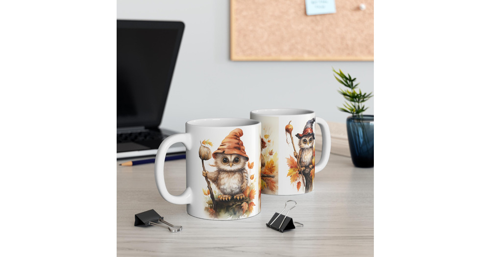 Autumn Owl Mug, Cute Fall Coffee Cup, Cozy Beverage Mug, Owl Lover Gift, Seasonal Drinkware