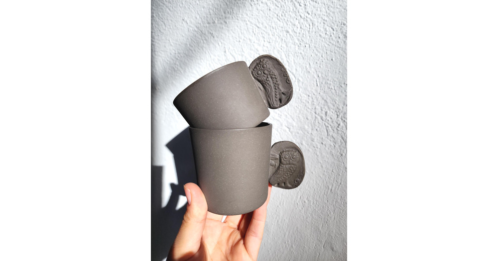 Handmade Black Stoneware Owl Mug: Unique Ceramic Coffee Cup
