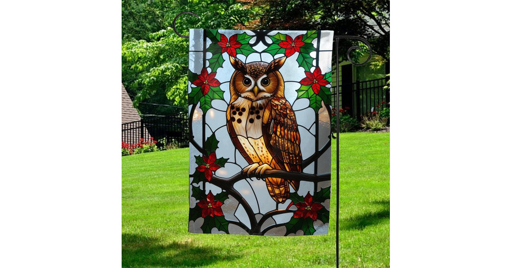 Christmas Garden flag, Christmas Owl Garden Banner, Cottagecore Christmas Garden Flag C1JO14