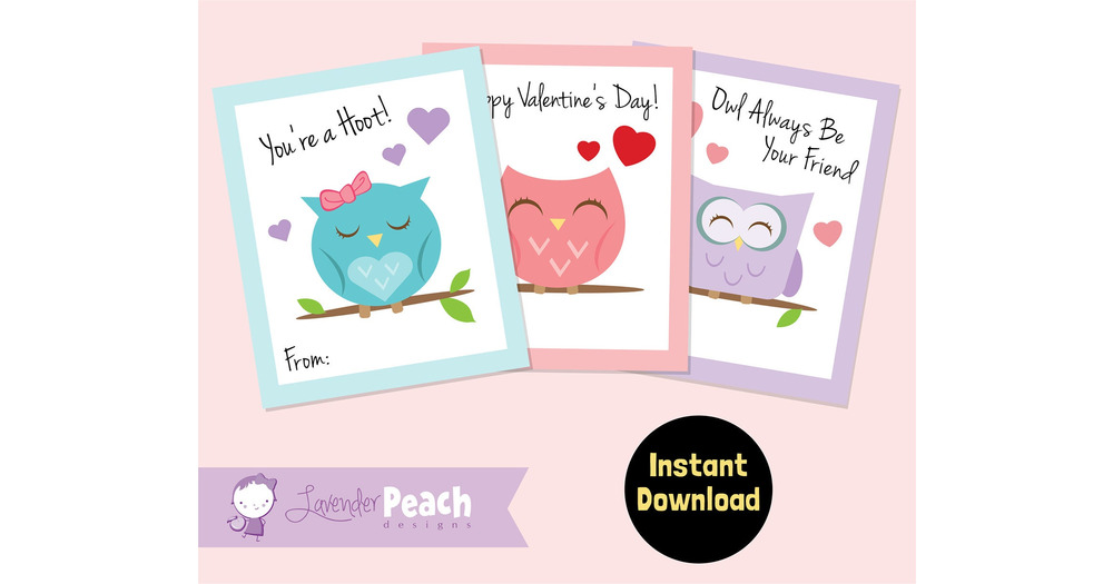 Owl Valentines - DIGITAL DOWNLOAD - Cute Printable Valentine Cards