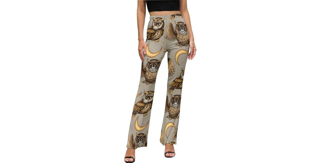 Moon Stars Owls Flare Leggings for Women Tummy Control - Wide Leg Bell Bottom, Bootcut Yoga Pants Bl
