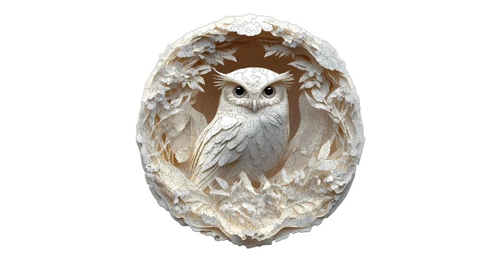 Jigfoxy Wooden Puzzles for Adults, Visual 3D Owl Wood Puzzles Adult, Unique Animal Shape Wooden Jigs