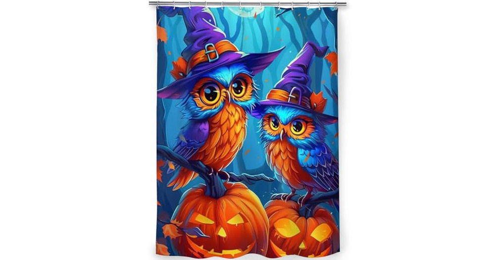Snuqevc Halloween Owl Shower Curtain Bathroom Set for Kids Adult, Home Decor Waterproof Fabric Bath