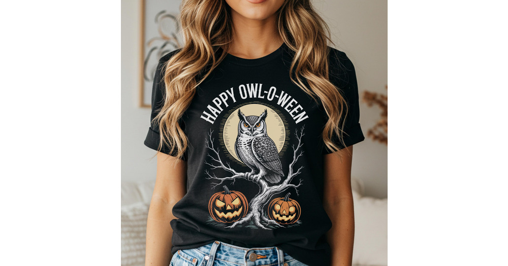 Owl Halloween T-Shirt, Happy Owl-O-Ween Shirt with Pumpkins, Funny Spooky Owl Tee, Trick or Treat Co