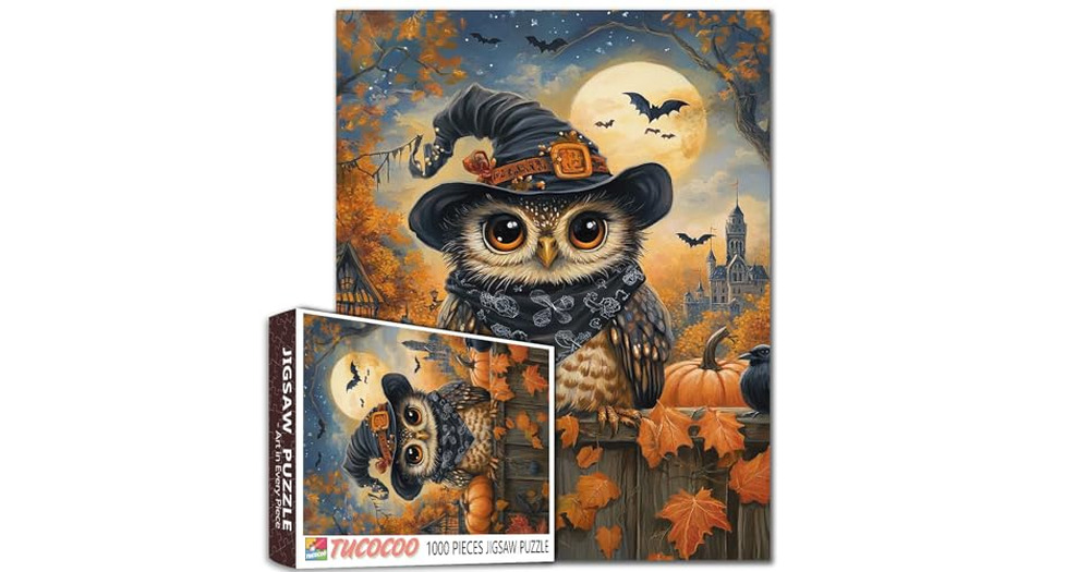 Cute Owl Halloween Theme 1000 Piece Jigsaw Puzzle for Adults Students Autumn Leaves Pumpkin Haunted
