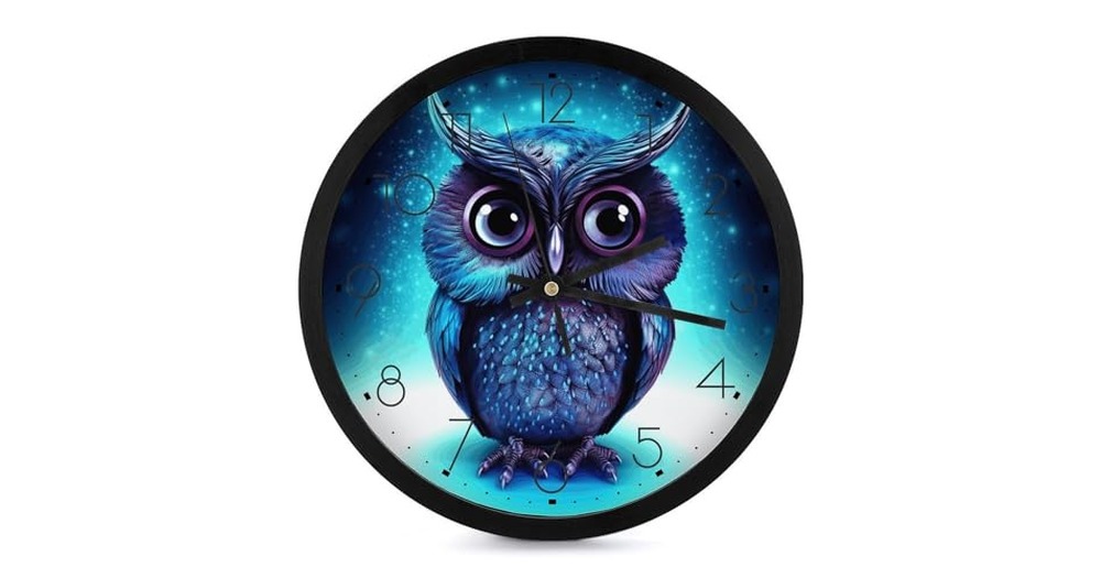 DMHVGEW 10 Inch Wall Clock Silent Non-Ticking Blue Owl Clock for Home Modern Clocks Small Clocks Dec