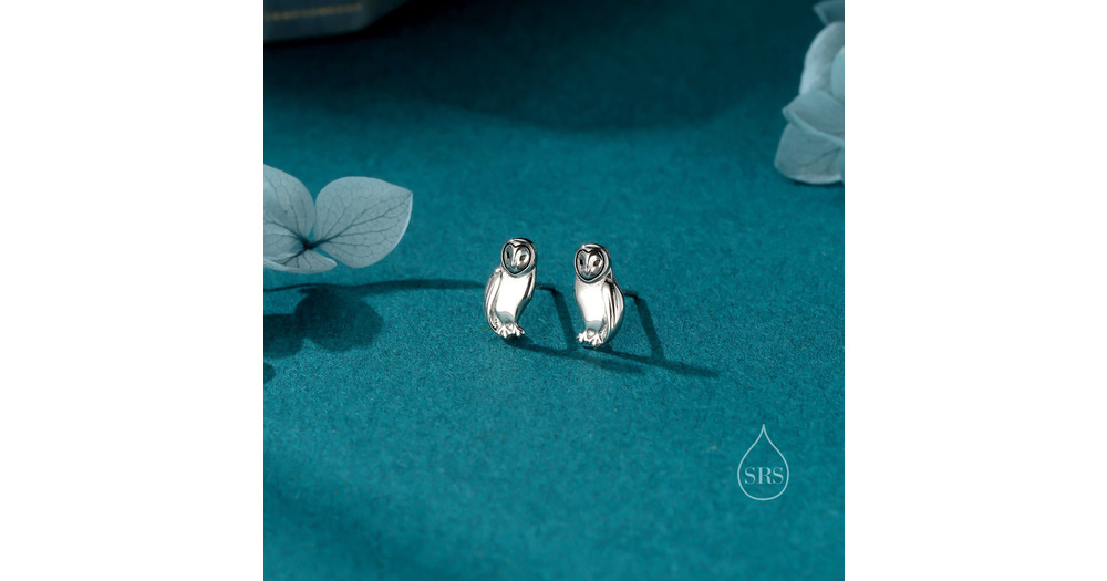 Barn Owl Stud Earrings in Sterling Silver, Gold and Rose Gold. Owl Bird Earrings,  Nature Inspired A