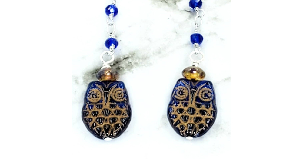 Blue Owl Dangle Earrings, Owl Boho Chain Earrings, Cute Owl Lovers Gift Earrings, Birthday Gift For