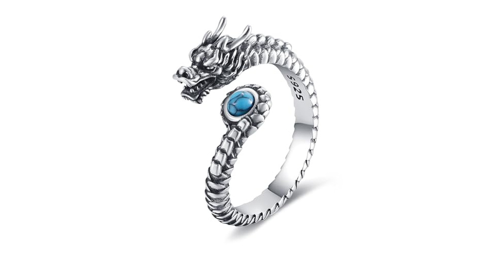 AOBOCO Sterling Silver Spinner Ring for Women Turquoise Highland Cow Dragon Butterfly Owl Jewelry Bi