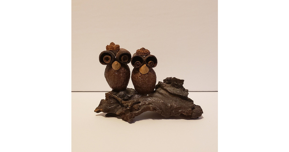 Vintage Art Owls on a Branch made from all natural materials acorns wood