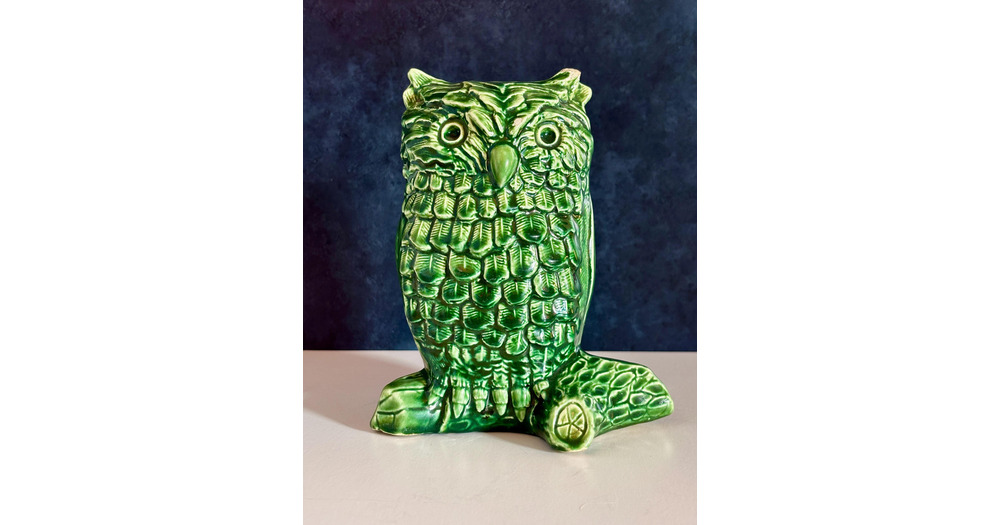 Vintage Chippy Green Glaze Ceramic Large Owl Figurine 6.75” H