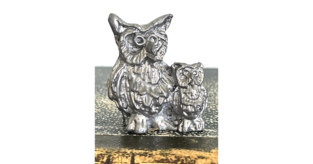 Vintage Pewter Owl Family, Miniature | Owl Mom and Baby | Pewter Bird