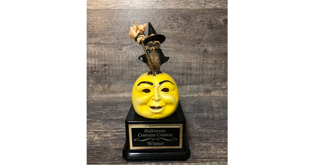 Halloween Trophy Whimsical Rustic Owl & Moon Kids Halloween Pumpkin Carving Contest Trophy Best