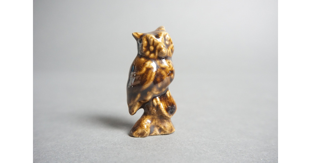 Brown Owl Figurine, Miniature Ceramic Owl Figurine, Small Perched Bird Brown Owl Ceramic Figurine, M