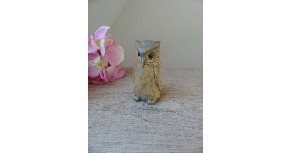 Figurine miniature de hibou sculpté main en corne de buffle - Porte bonheur artisanal - Cadea