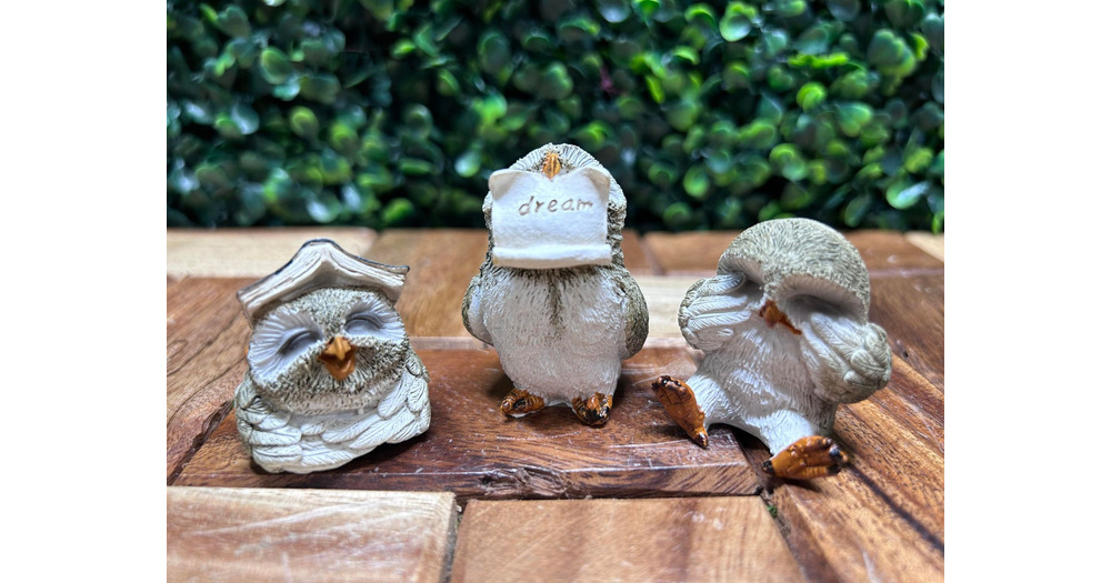 Beautiful Hand Sculpted Mini Reading Owls Poly Resin Figurines / Whimsical Hand Painted Detailed | C