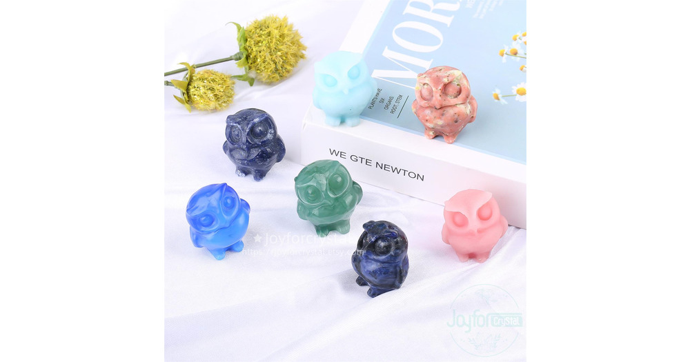 Wholesale 1.5" Crystal Owl Figurine, Hand Carved Gemstone Bird Statues, Spirit Totem Decor