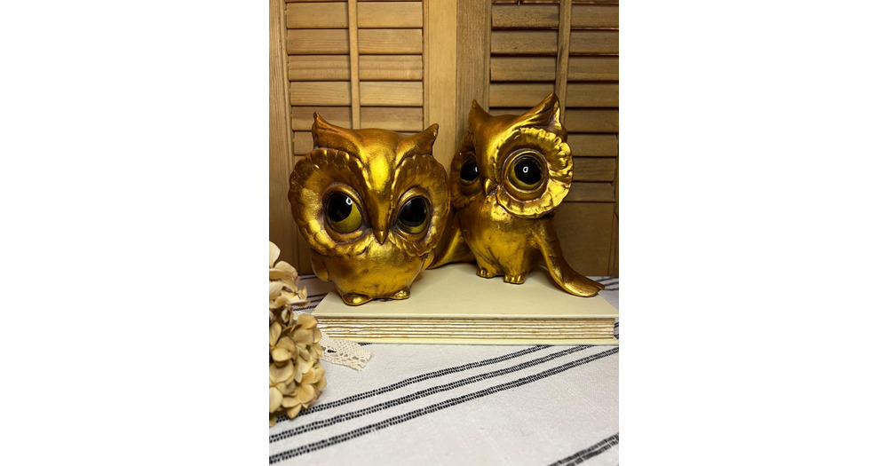 gold gilt MCM Chalkware owl pair 1960s 1970s