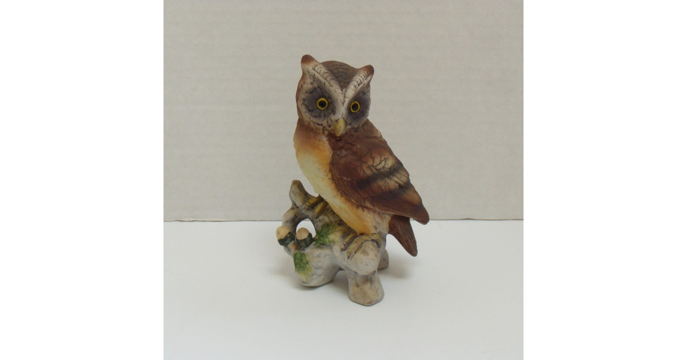 Lefton Vintage Ceramic Owl Figurine, Horned Owl Figurine, Lefton Owl on Branch, Lefton Brown Owl, Au