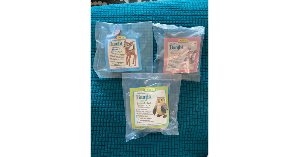 Bambi , Thumper, and Owl, Set of 3, from the Walt Disney Classic, from McDonald’s, in 1988,NIP