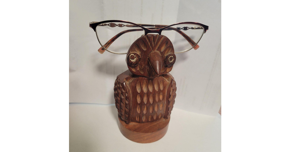 Vintage Hand Carved Wooden Eyeglasses Holder Owl Figurine