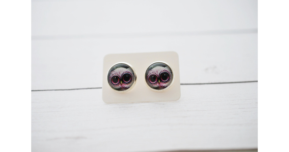 Owl Stud Earrings: Pink Owl Cabochons, Silver Posts