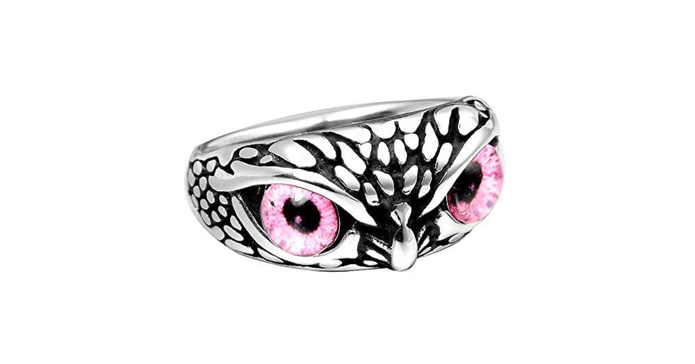 ANIEJUFI Stainless Steel Demon Eye Owl Ring Retro Animal Statement Rings for Women Men Jewelry Gift