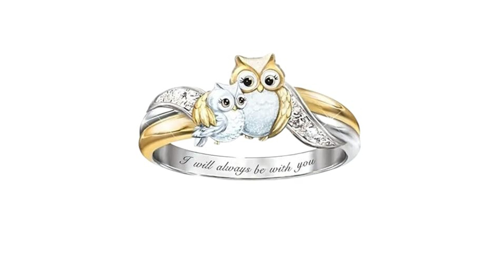 NAWADOMA New 2026 Unisex I Will Always Be With You Rings For Women Hers Fashion Kute Mother Owl Crys