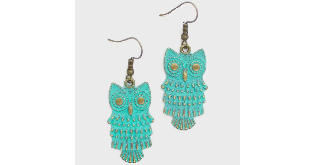 Give a Hoot Owl Statement Earrings | Hand-Painted Bronze Bird Earrings | Boho Large Charm Earrings |