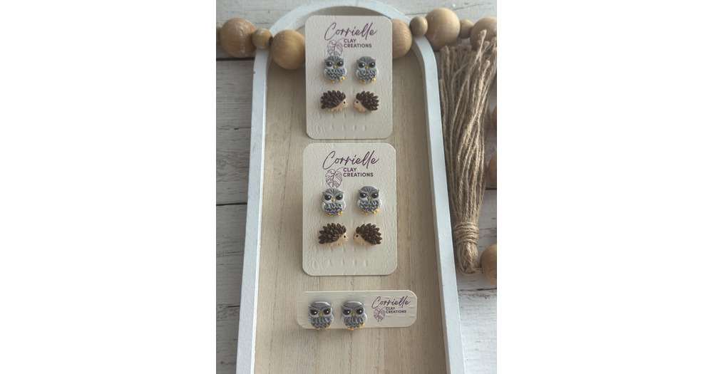 Fall Woodland Creatures Owl and Hedgehogs Stud Pack Polymer Clay Earrings