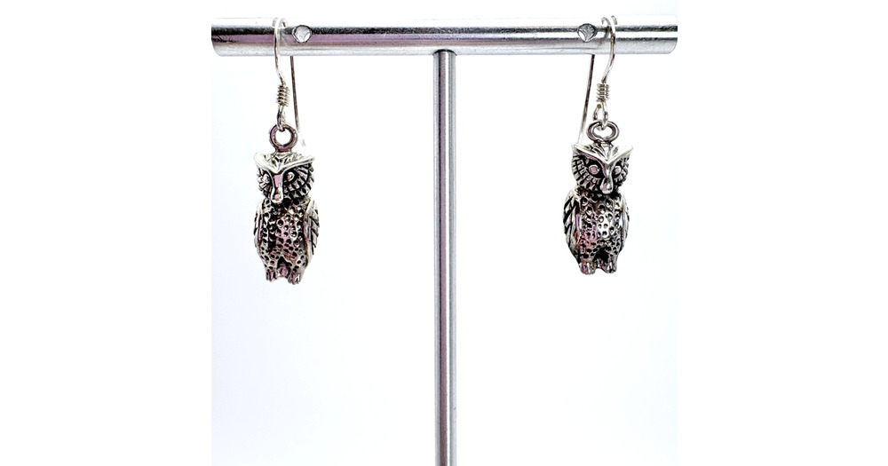 VTG Solid Sterling Silver 925 Textured Owl Dangle Earrings Size 1.25" Length