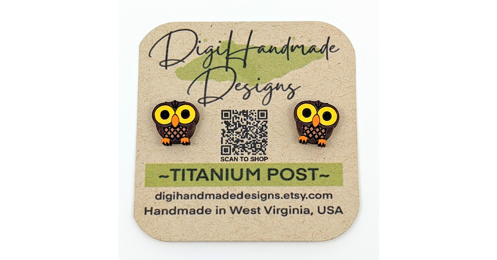 Hoot Owl Earrings / Handpainted Woodland Animal Bird Studs / Handmade in WV, USA