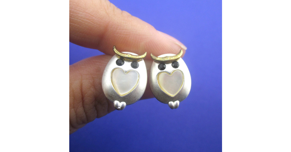 SALE: Wise Barn Owl Shaped Allergy Free Stud Earrings with Heart Shaped Detail in Silver | Minimalis