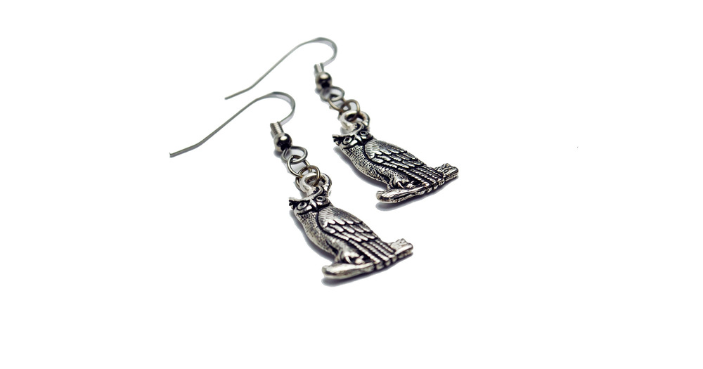 Owl Earrings in Silver - Silver Owl Earrings, Silver White Faced Owl Jewelry, Owl Earrings, Wildlife