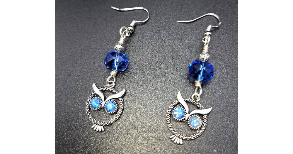 Beaded Earrings with Crystal eyed owls. Sterling silver ear wires. Swarovski crystals eyes. Gift for