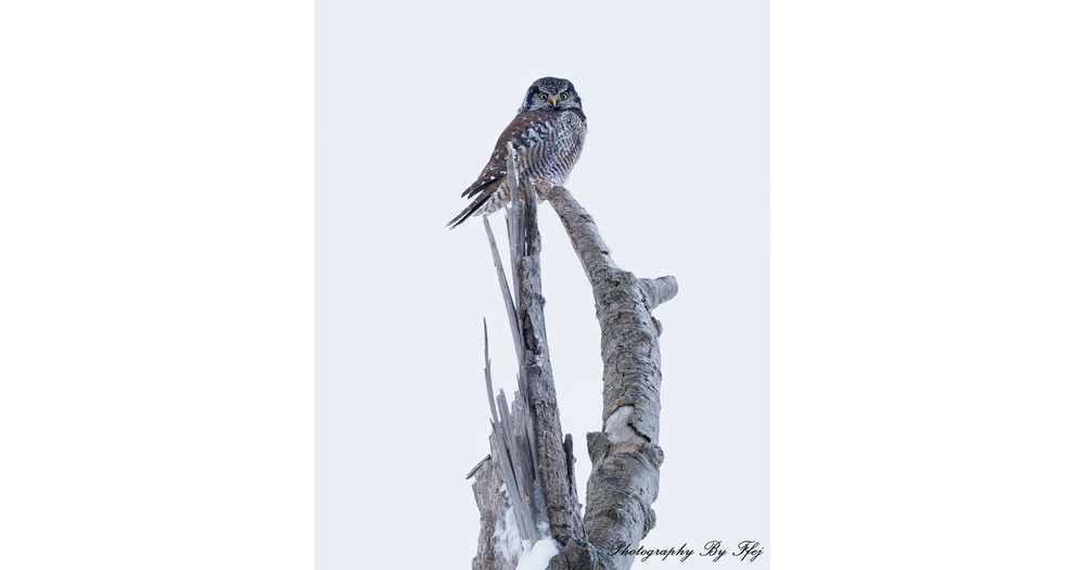 Northern Hawk Owl perched on a snag, Sax-Zim Bog, Minnesota