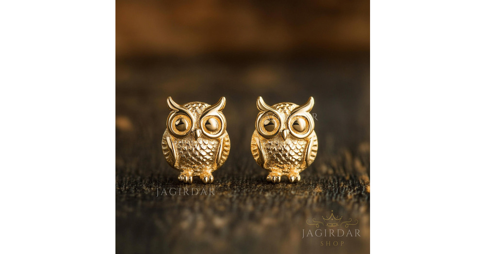 14k Gold Owl Studs, Gold Owl Earrings, Tiny Owl Studs, Gold Cute Owl Studs, Gold Owl Bird Stud Earri
