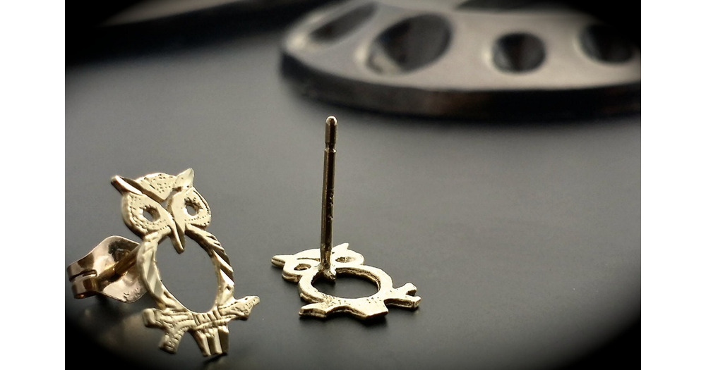 14k Gold Owl Earrings: Diamond Cut Post Earrings