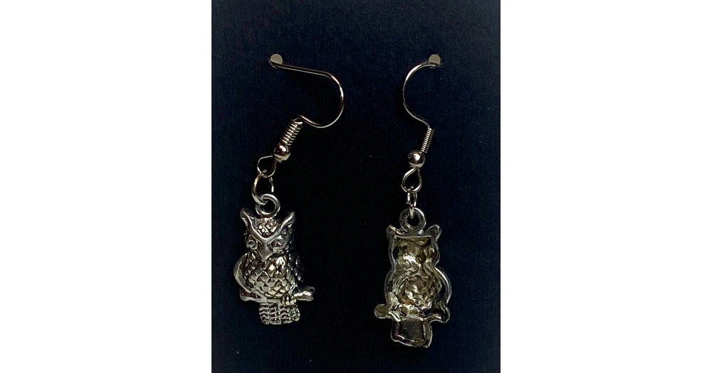 ES- Silver Colored Owl Earrings. Dangle with fishhook and stops. Pretty.