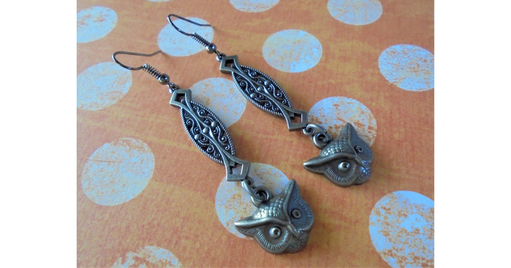 Art Deco Pewter Owl Earrings (5905)