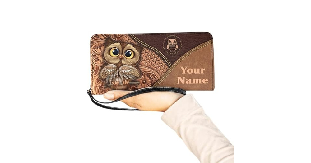 Personalized Owl Women Leather Wallet, Custom Vintage RFID Blocking Zipper Wallets, Multi Card Holde